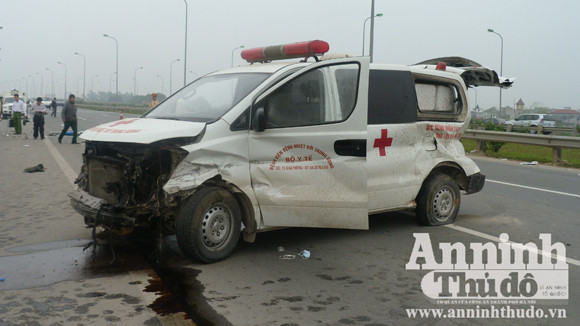 Vụ tai nạn nghiêm trọng trên xảy ra lúc 4h30 ngày 30-3, tại km 15+900 Đại lộ Thăng Long thuộc địa bàn xã Yên Sơn, huyện Quốc Oai. Theo điều tra ban đầu, vào thời điểm trên, xe ô tô cứu thương của bệnh viện Nhiệt Đới, BKS: 30X-8872 đi theo hướng Mỹ Đình – Hòa Lạc đang di chuyển với tốc độ cao đã bị nổ lốp, đâm thẳng vào dải phân cách bằng thép bên sườn Đại lộ Thăng Long