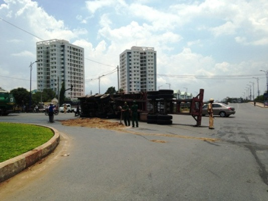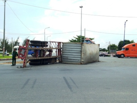 Theo thông tin ban đầu, thời điểm trên xe đầu kéo BKS:57K- 9927 theo container (loại 20 feet0 chở đầy hạt ngô lưu thông từ cảng Cát Lái đến cầu Phú Mỹ, quận 7. Do biết phía trước có trạm cân nên tài xế điều khiển xe với tốc độ cao đổi hướng tại vòng xoay Mỹ Thủy nên bị lật.