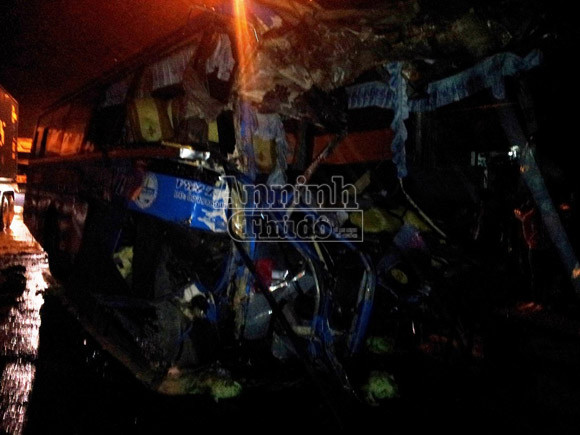 Vụ đấu đầu làm 2 người chết tại chỗ và ít nhất 10 người bị thương nặng phải nhập viện cấp cứu. Phần đầu hai chiếc xe bị nát, biến dạng, hư hỏng nặng.
