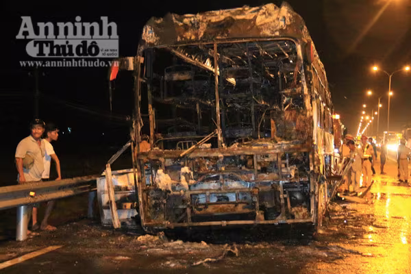Hiện trường vụ cháy xe khách tại Quảng Nam