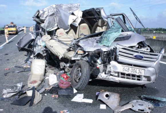 Cú va chạm cực mạnh khiến đầu xe khách bị biến dạng nặng, nhiều người bị thương trong đó có 2 nạn nhân tử vong tại chỗ. Dù trước đó nhiều hành khách có mặt trên xe lúc này đã cảnh báo tài xế nhưng anh này không xử lý kịp.