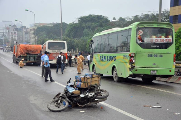Vụ TNGT xảy ra tại cầu vượt Mai Dịch, Hà Nội ngày 12-4. Chiếc xe khách mang BKS 88B - 001.55 đang chạy theo hướng Mỹ Đình – cầu Thăng Long, đã bất ngờ đâm vào 1 xe đạp điện, 1 xe máy và 2 ô tô đang chạy cùng chiều. Hậu quả 1 người tử vong tại chỗ.