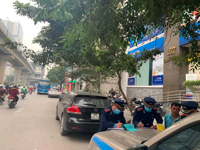 Lực lượng chức năng xử phạt vi phạm trên trục Khuất Duy Tiến - Nguyễn Trãi - Đại lộ Thăng Long