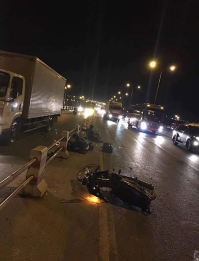 Theo một số người dân chứng kiến hiện trường, vào thời điểm trên, 2 thanh niên điều khiển xe máy lưu thông theo hướng Bắc Ninh – Hà Nội. Khi đến đầu cầu Thanh Trì, thuộc địa phận huyện Gia Lâm đã lấn sang làn đường dành cho ôtô đi cùng chiều và bị một chiếc xe tải tông phải. Cú va chạm mạnh khiến 2 thanh niên văng ra khỏi xe máy, nằm gục bên dải phân cách.