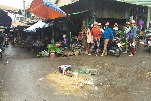 Chợ Chư Sê (huyện Chư Sê, Gia Lai) nơi xảy ra vụ tai nạn giao thông nghiêm trọng khiến 3 người tử vong tại chỗ, 1 người tử vong trong bệnh viện và 1 người bị thương