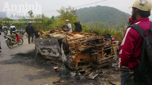 Tại hiện trường, chiếc xe lưu thông theo hướng Vinh – Quế Phong, bị cháy rụi hoàn toàn, chỉ còn trơ lại khung sắt, xe không có biển số, 4 bánh chổng vó lên trời. Trên mặt đường xuất hiện vết trượt lốp bánh xe dài khoảng 20 mét.