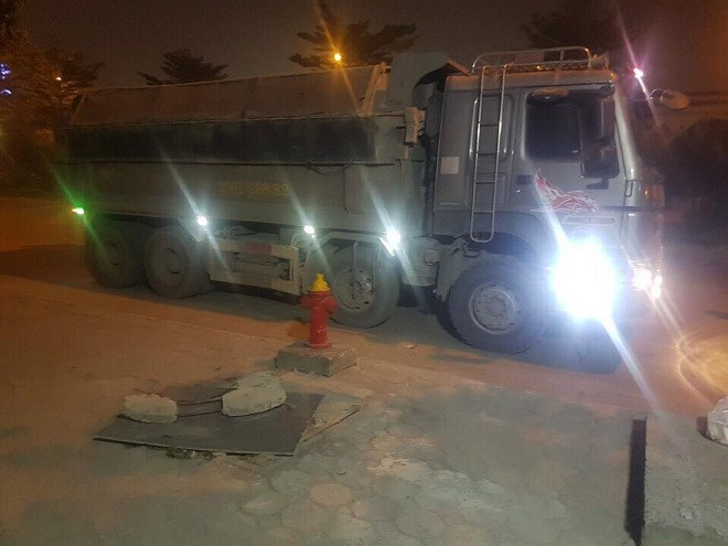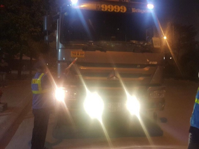 Đêm 20-2, Đội Thanh tra giao thông vận tải quận Cầu Giấy làm nhiệm vụ tại đường Dương Đình Nghệ, thuộc phường Yên Hòa, phát hiện một phương tiện xe ô tô tải vi phạm nên đã yêu cầu dừng kiểm tra.