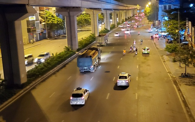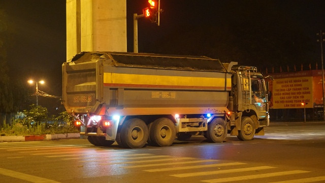 Về đêm, xe chở quá tải vẫn hoạt động khá nhộn nhịp trên nhiều tuyến đường quận Hà Đông