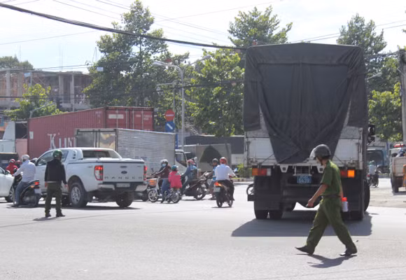 Tại hiện trường chiếc xe máy của nữ sinh điều khiển nằm cách xe tải chừng 5 mét. Nhận được tin báo, CSGT và lực lượng phối hợp có mặt để khám nghiệm hiện trường, điều tiết giao thông.