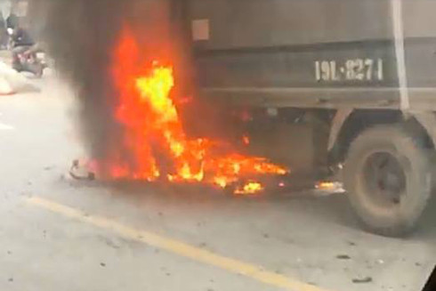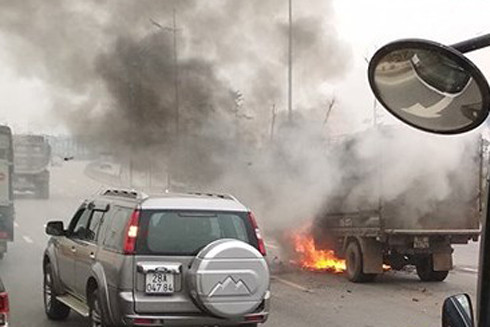 Vào khoảng 15h20 ngày 15-1, chiếc xe tải BKS 19L - 8271 khi đang lưu thông trên đường Hoàng Sa, theo hướng từ cầu Nhật Tân về cầu Đông Trù, bỗng nhiên bốc cháy dữ đội.