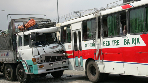 Thông tin ban đầu, vào thời điểm trên xe khách loại 50 chỗ mang BKS 71T -7009 tuyến Bến Tre – Vũng Tàu do tài xế Nguyễn Hoàng Tuấn (41 tuổi) đang đừng chờ đèn đỏ thì bất ngờ từ phía sau xe tải chở phế liệu BKS 83L -3813 bỗng nhiên đâm vào đuôi xe của tài xế Tuấn.
