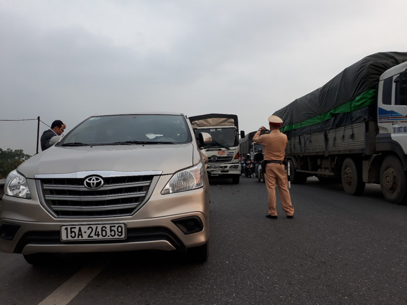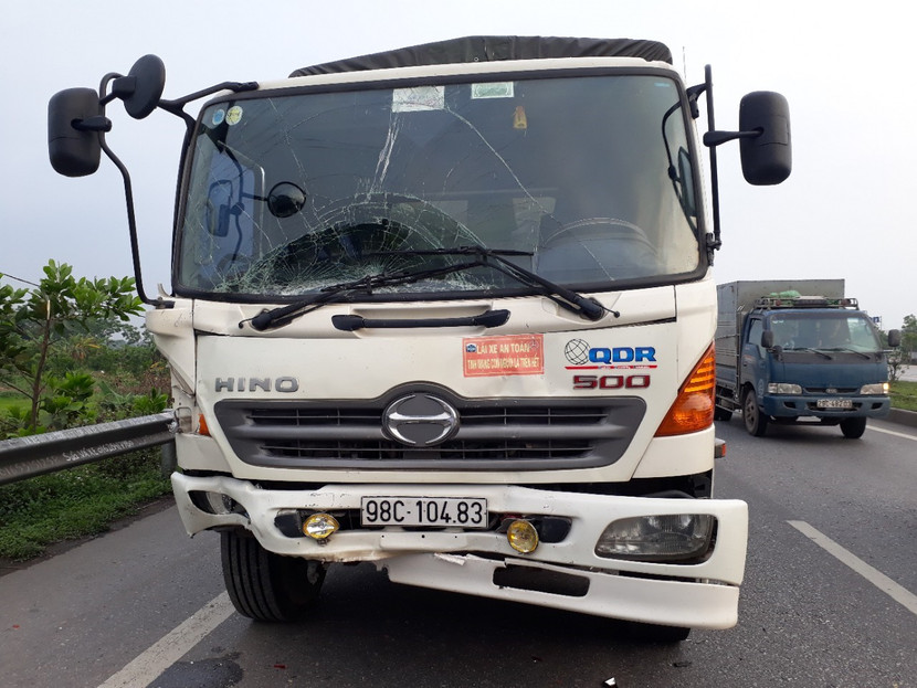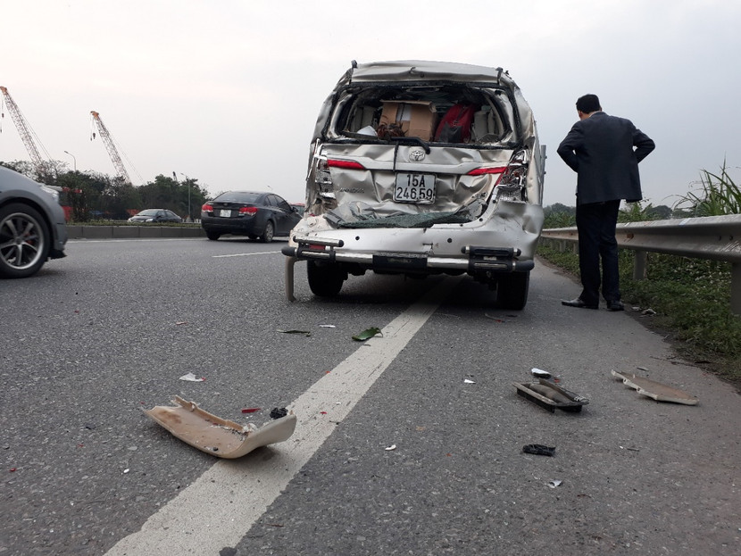 Tại hiện trường, phần đuôi của chiếc xe Innova mang BKS: 15A - 246.59 bị “vò” nát. Cách đó gần 10 mét là chiếc xe tải HINO mang BKS: 98C - 104.83 cũng bị hư hỏng phần đầu xe; các mảnh vỡ của 2 xe văng tung tóe trên mặt đường.