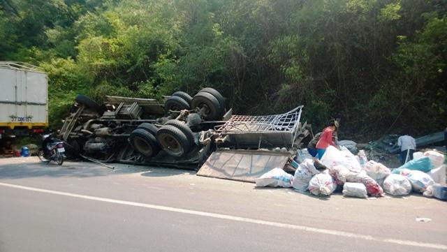 Trước đó, khoảng 20 giờ ngày 31-5, chiếc xe tải mang BKS 37C-073.72, do tài xế Nguyễn Văn Tuấn (khoảng 36 tuổi, ở Nghệ An) điều khiển, chở theo một phụ xe (chưa rõ họ tên) cùng khoảng 9 tấn hàng tạp hóa, tạp phẩm và đồ gia dụng lưu thông theo theo hướng Nam – Bắc, khi đến khu vực trên thì bị lật. Rất may, chỉ có tài xế tên Tuấn bị thương nhẹ,