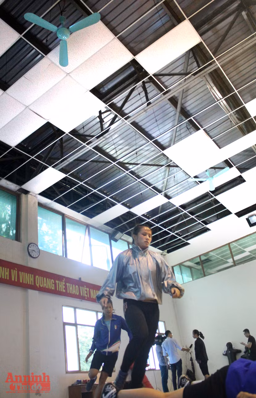 Để việc ép cân hiệu quả, Ban huấn luyện yêu cầu tắt hết quạt trần. Nhiệt độ trong phòng tập khá nóng, điều này giúp VĐV tiết nhiều mồ hôi