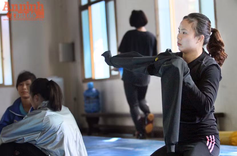 Đồng đội của cô tại Olympic - Nguyễn Thị Lụa (hạng 53kg) phải băng cổ chân trước khi tập. Sau thời gian dài thi đấu, cổ chân cô bị lỏng và thường đau mỗi khi tập cường độ cao
