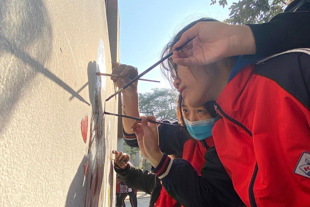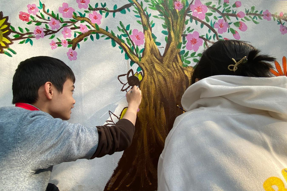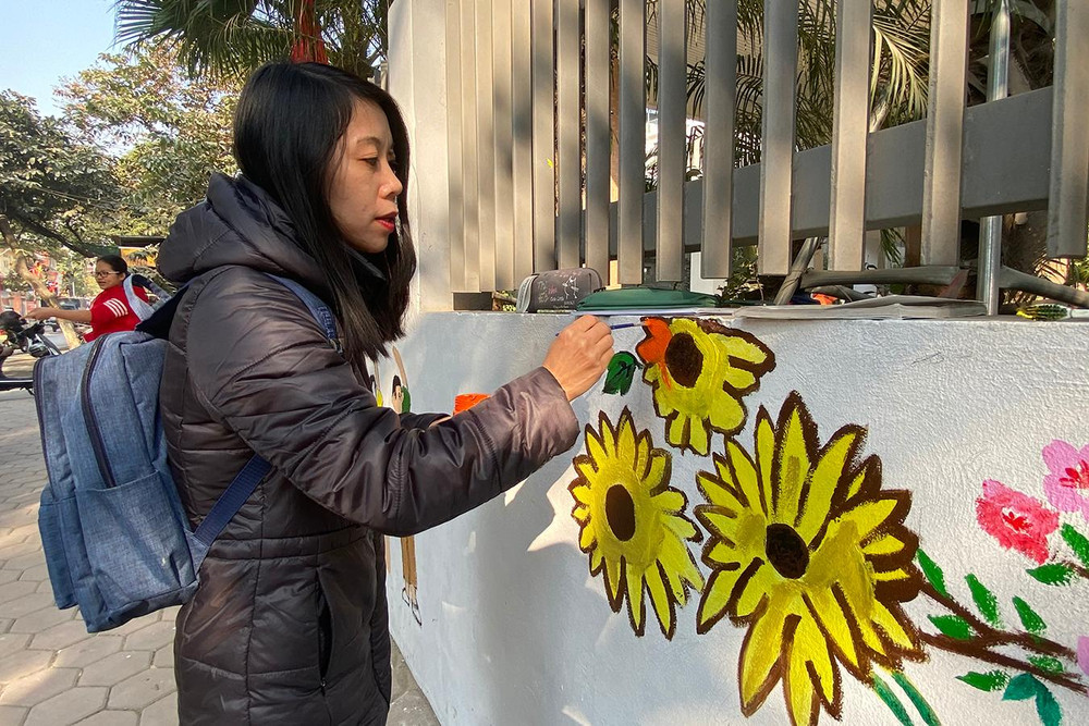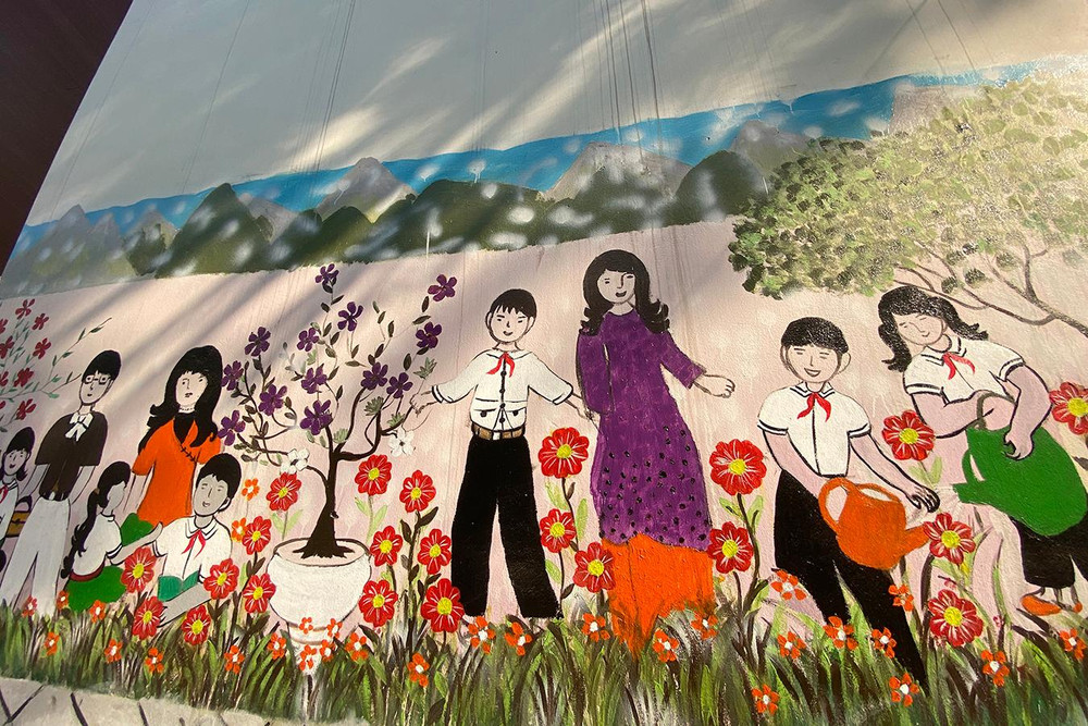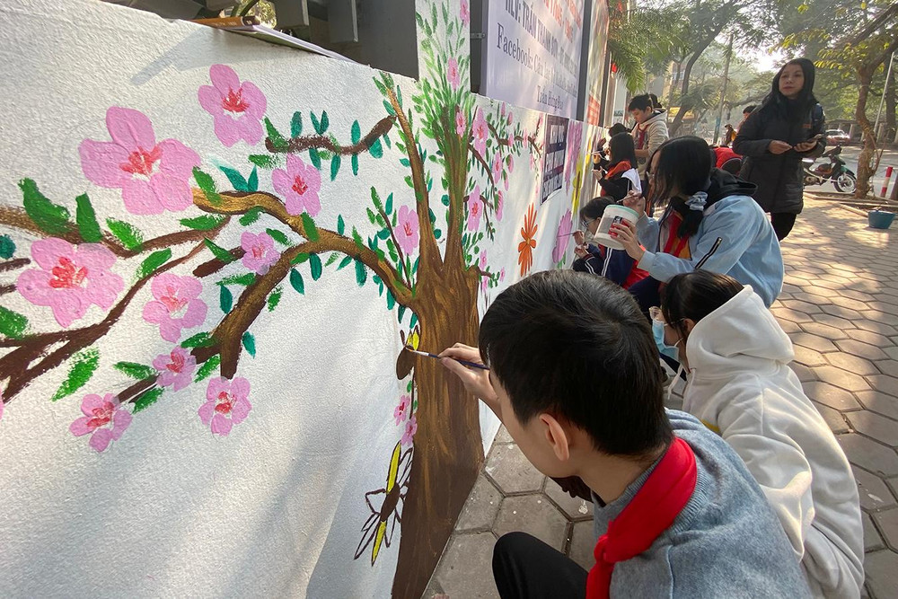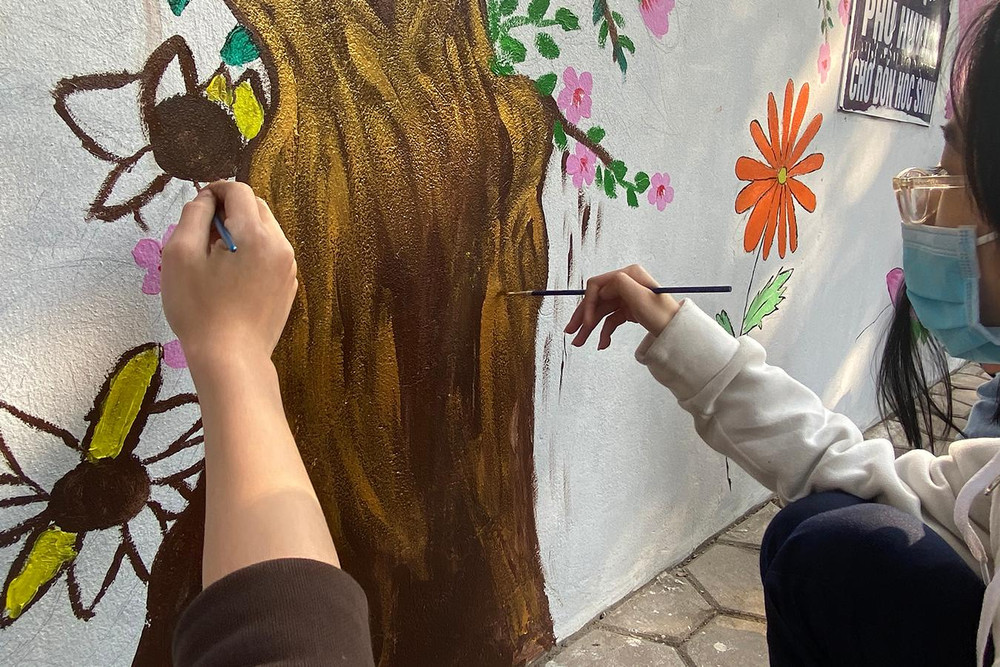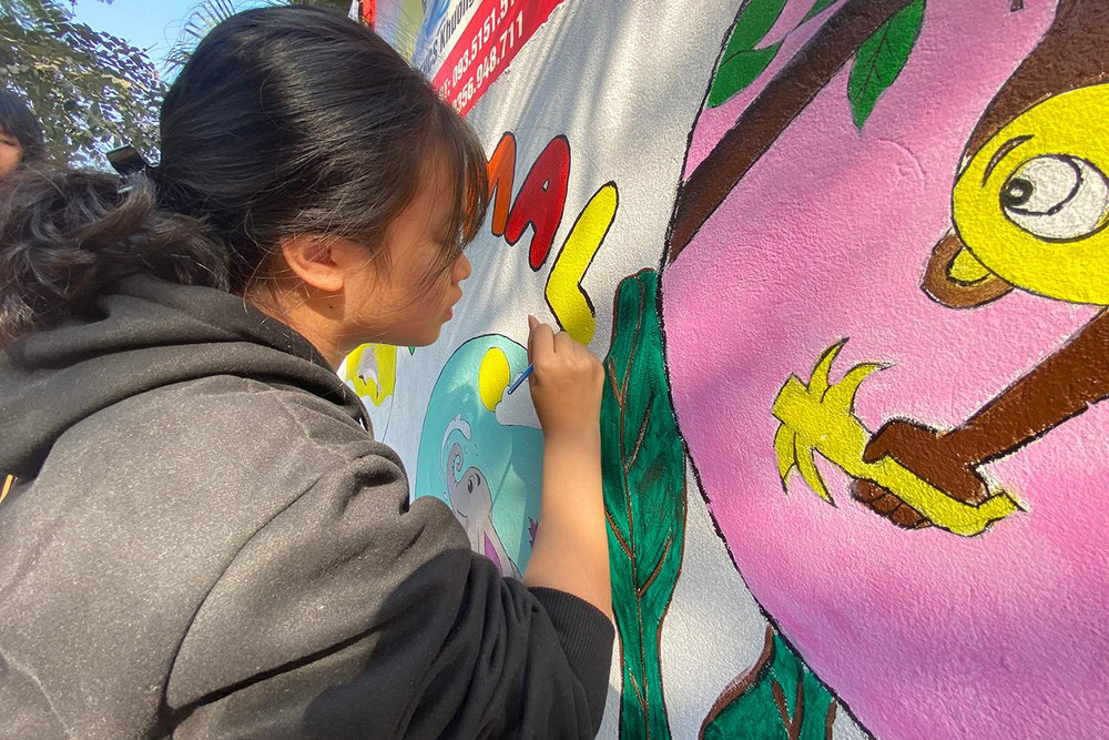 ANTD.VN - Không phải do các họa sĩ chuyên nghiệp sáng tác, những bức bích họa đầy màu sắc, hình ảnh sinh động và có tính giáo dục cao đã được các em học sinh trường THCS Khương Đình (Thanh Xuân, Hà Nội) vẽ lên thay thế cho màu sắc đơn điệu của bức tường bên ngoài trường học.