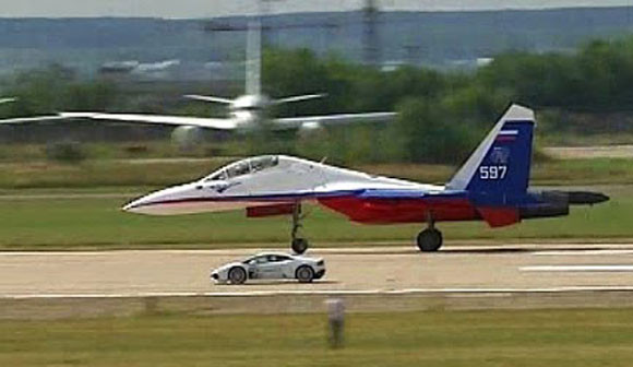 Lamborghini Hurancan so tài cùng phi cơ chiến đấu Su-27