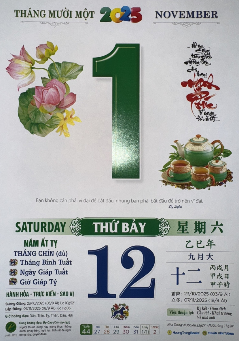 Thứ 7 ngày 1 tháng 11 năm 2025