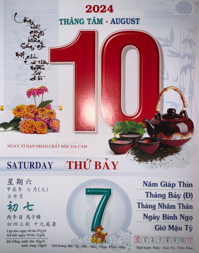 Thứ 7 ngày 10 tháng 8 năm 2024