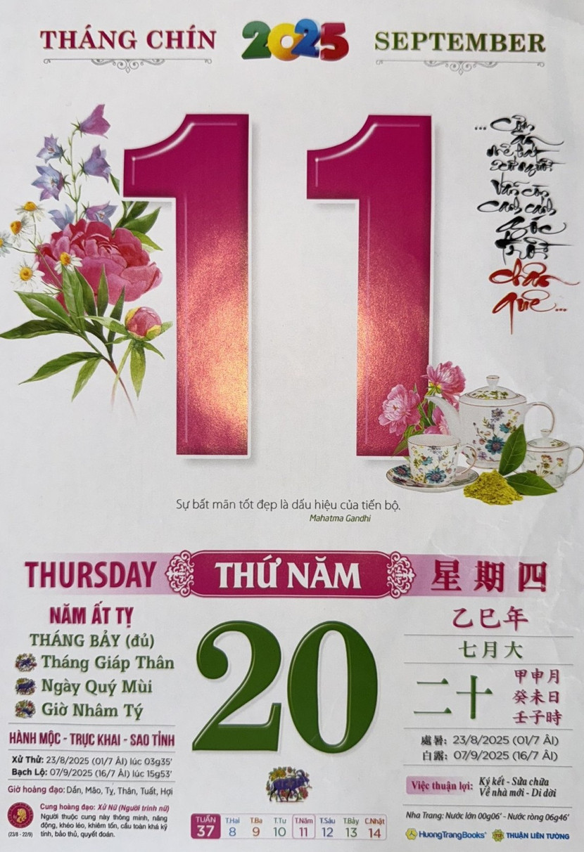 Thứ 5 ngày 11 tháng 9 năm 2025