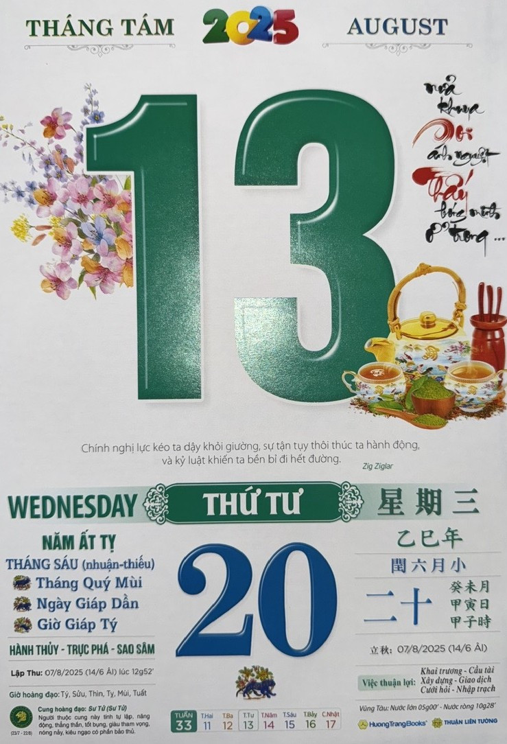 Thứ 4 ngày 13 tháng 8 năm 2025