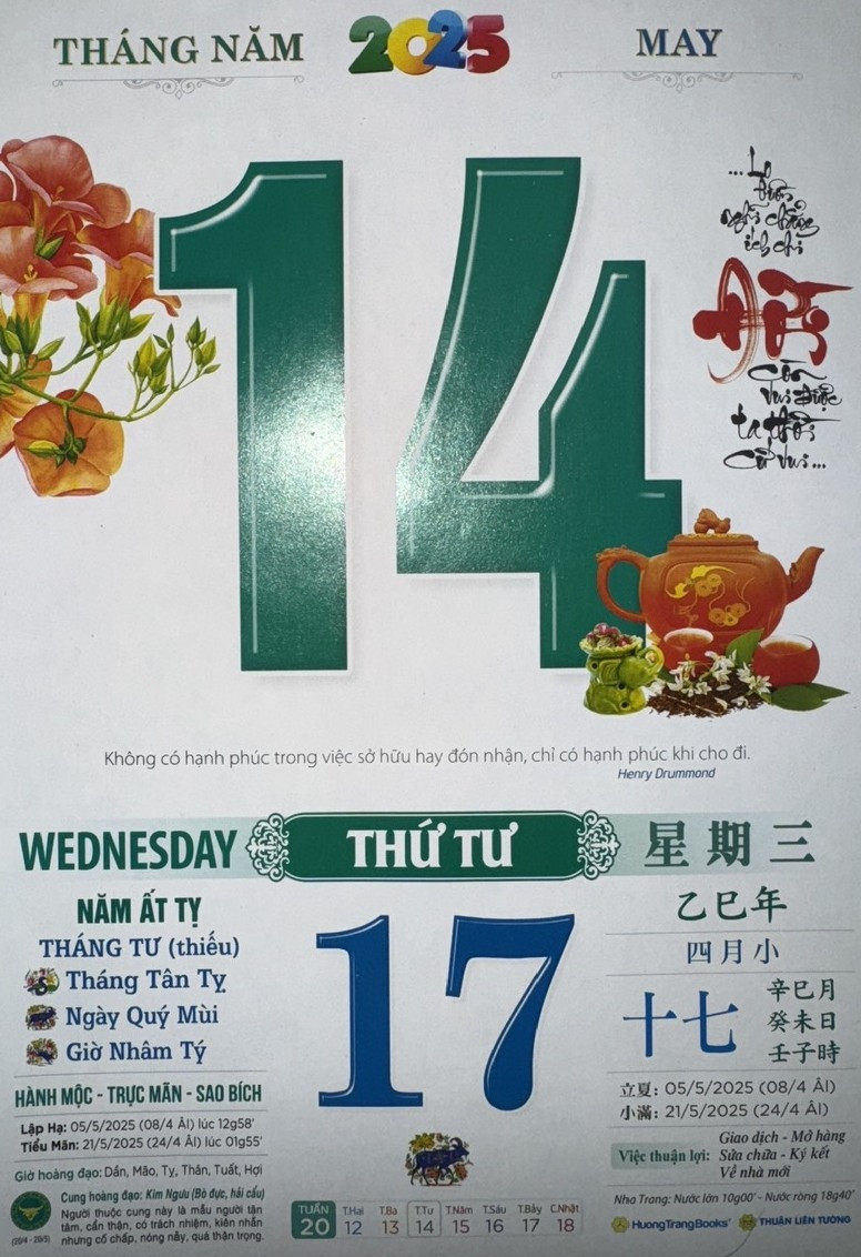 Thứ 4 ngày 14 tháng 5 năm 2025