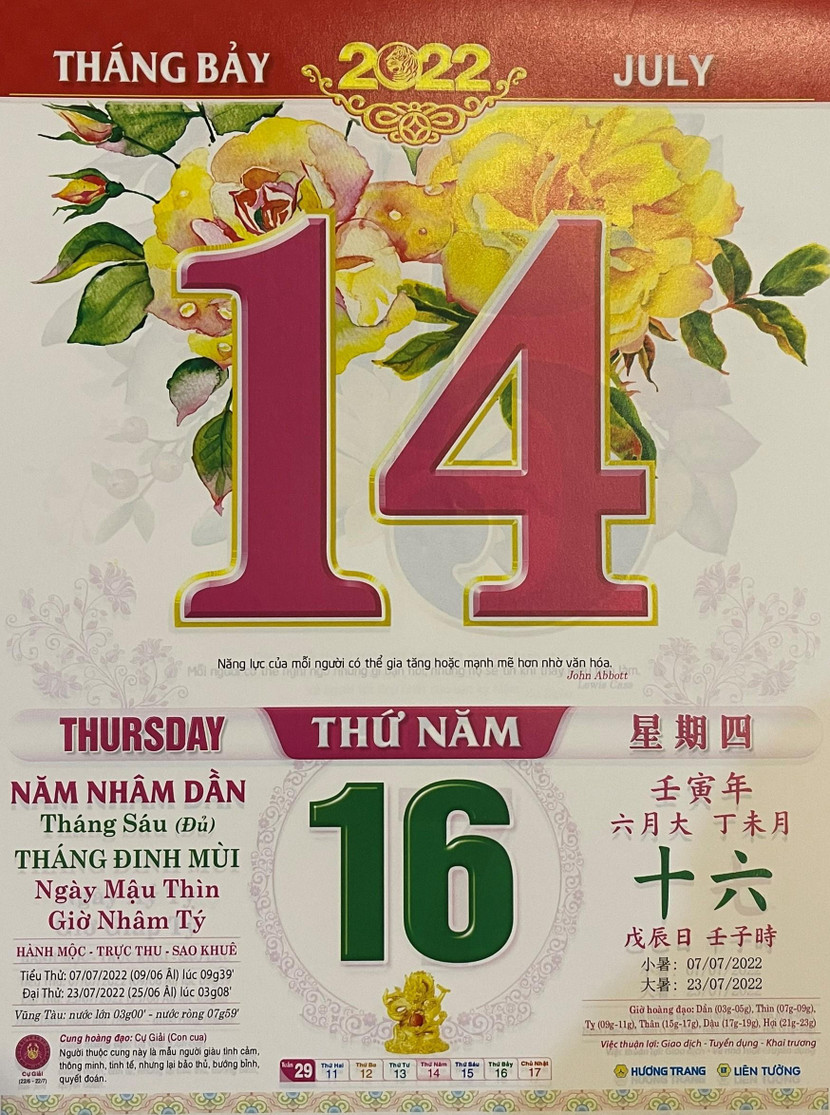 Thứ 4 ngày 14 tháng 7 năm 2022