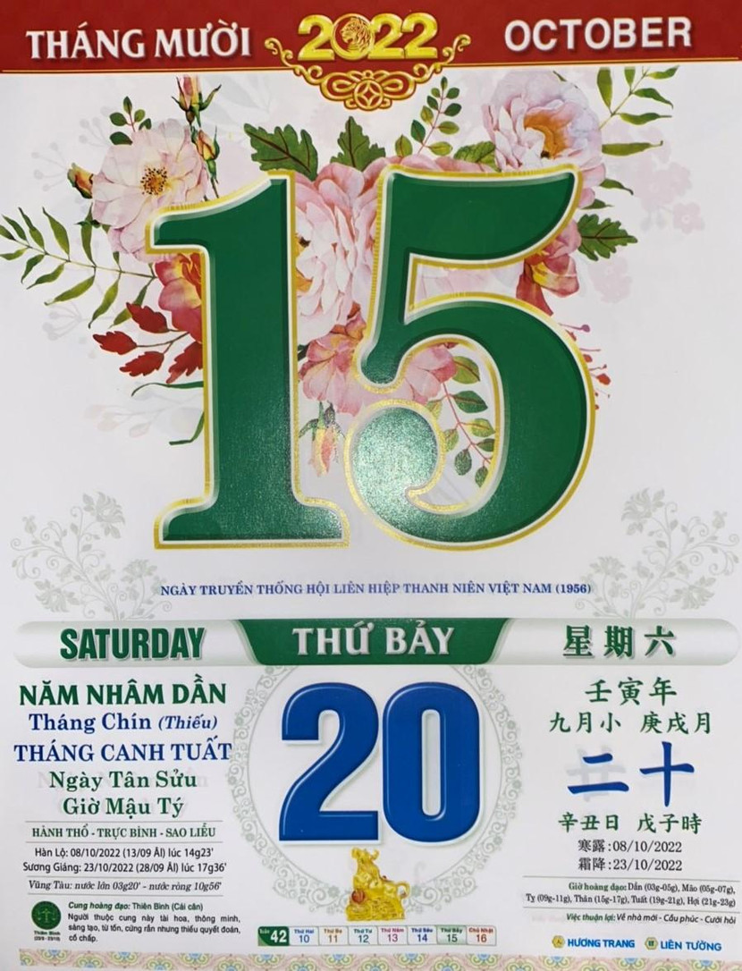 Thứ 7 ngày 15 tháng 10 năm 2022
