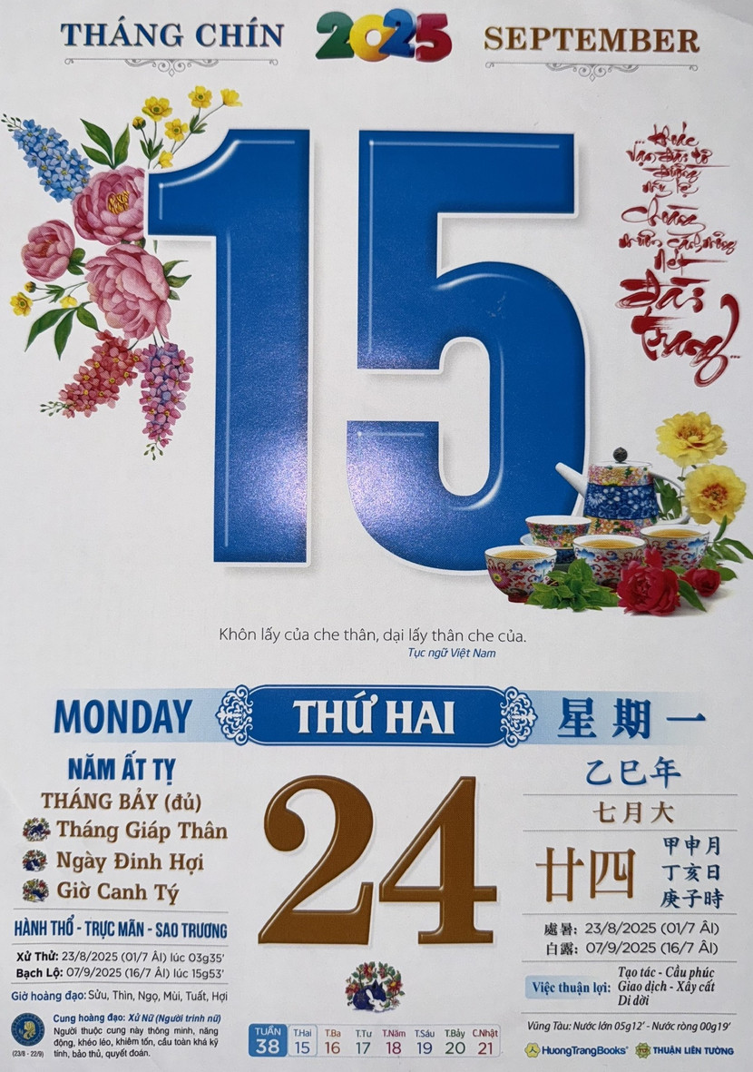 Thứ 2 ngày 15 tháng 9 năm 2025