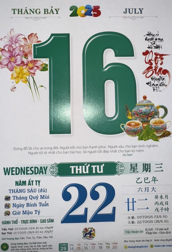 Thứ 4 ngày 16 tháng 7 năm 2025