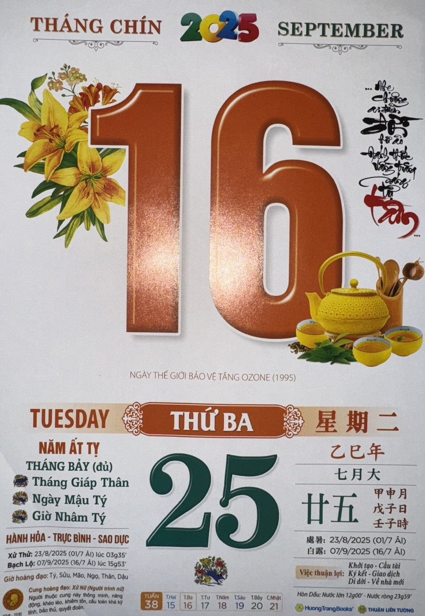 Thứ 3 ngày 16 tháng 9 năm 2025