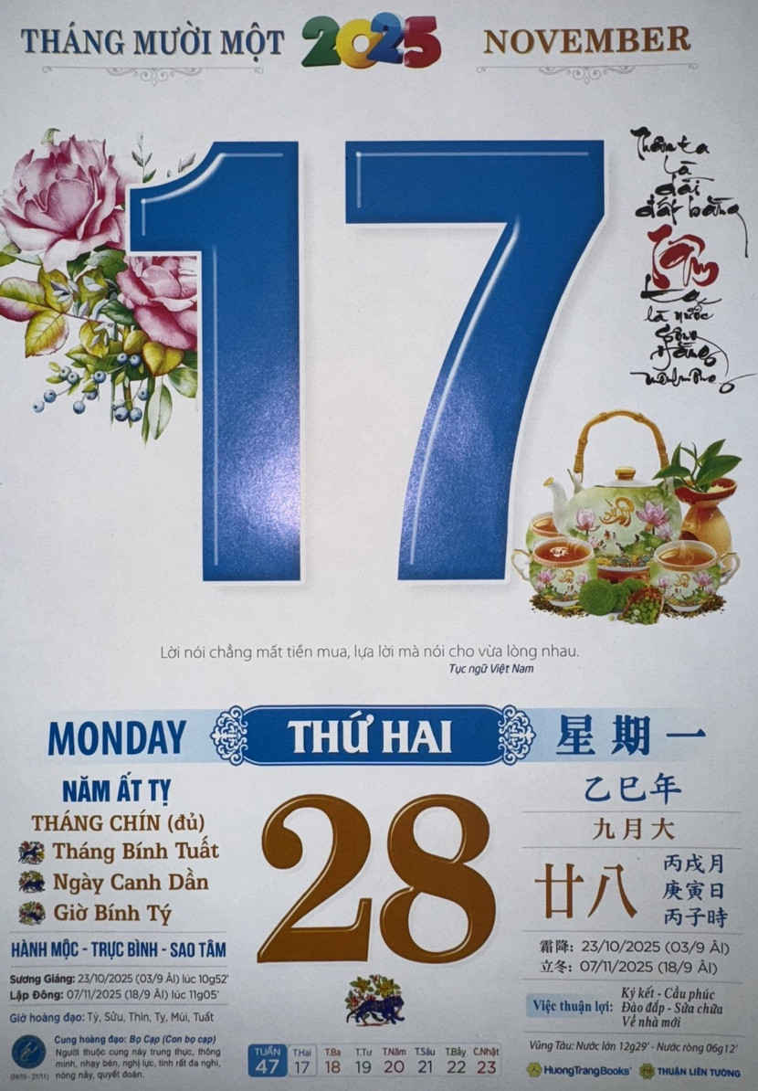 Thứ 2 ngày 17 tháng 11 năm 2025