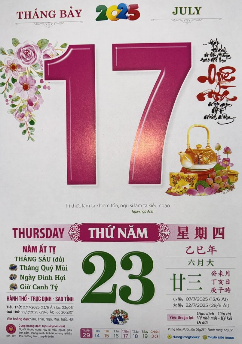 Thứ 5 ngày 17 tháng 7 năm 2025