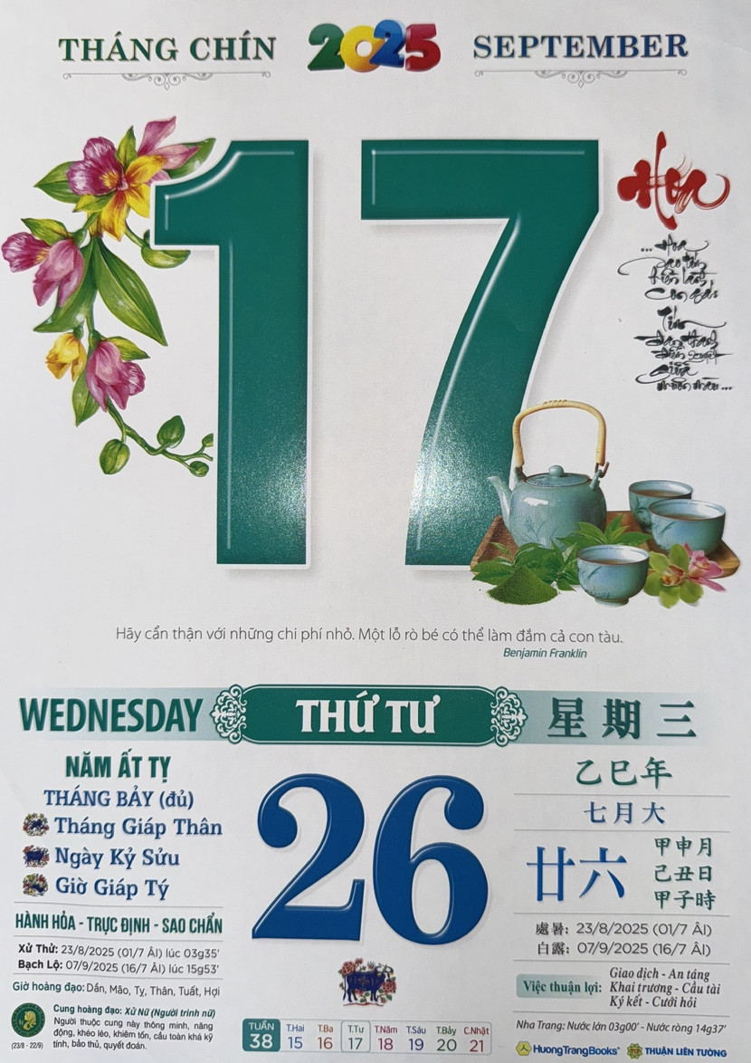 Thứ 4 ngày 17 tháng 9 năm 2025