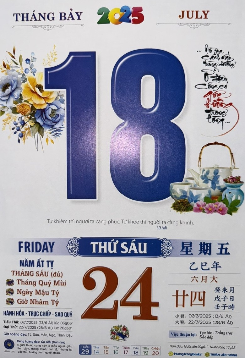 Thứ 6 ngày 18 tháng 7 năm 2025