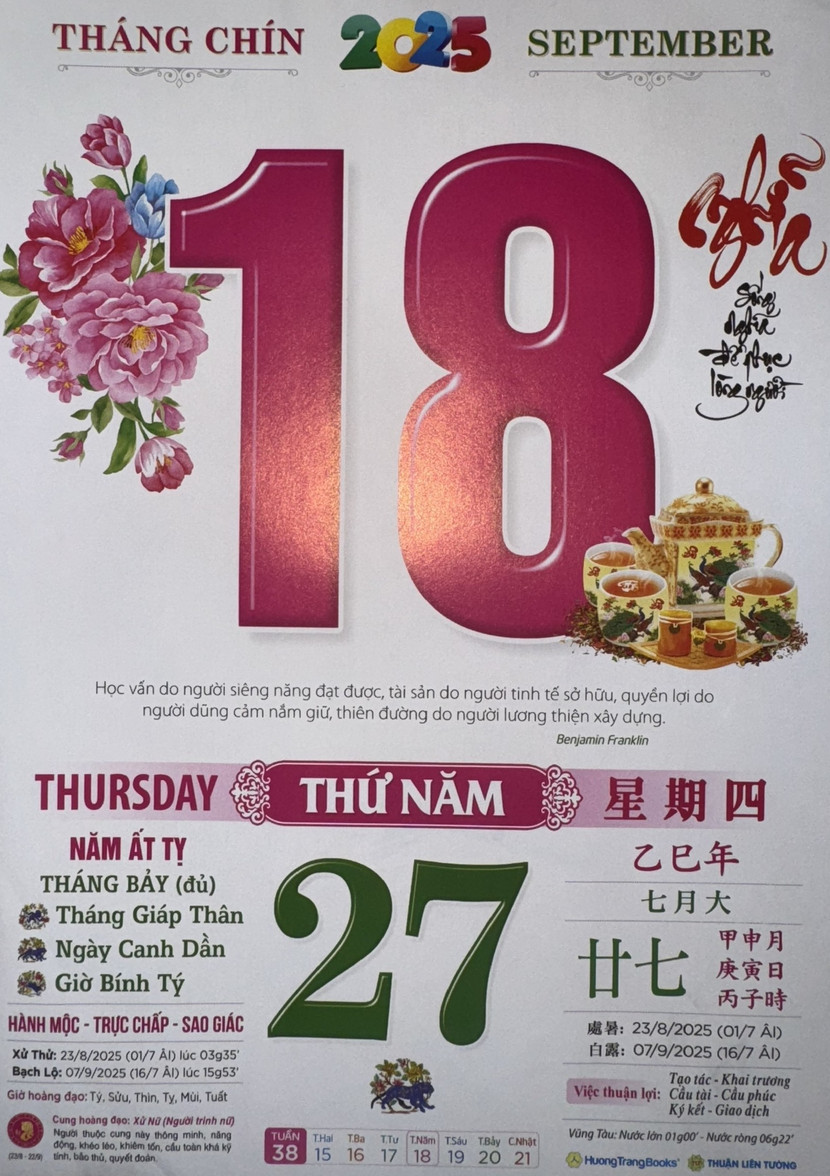 Thứ 5 ngày 18 tháng 9 năm 2025