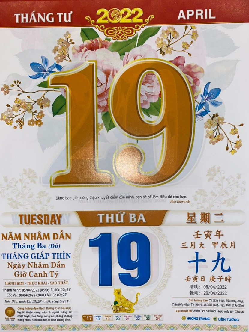 Thứ 3 ngày 19 tháng 4 năm 2022
