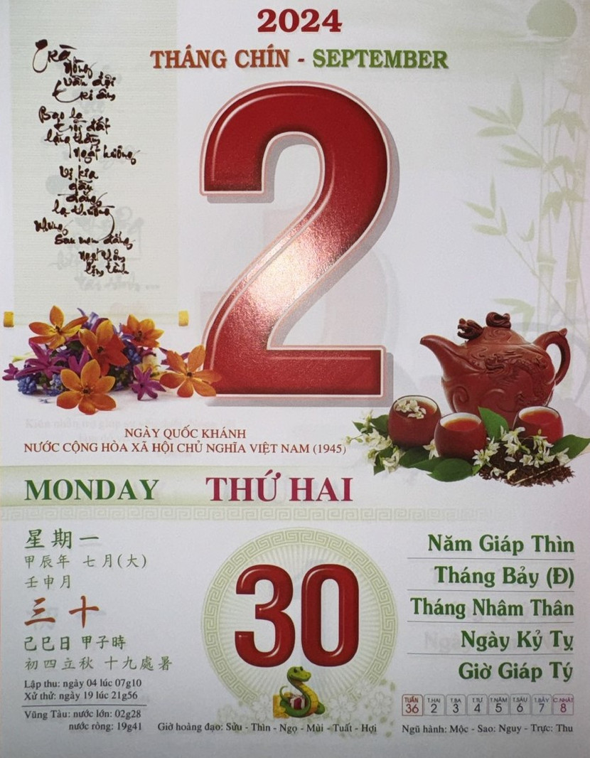 Thứ 2 ngày 2 tháng 9 năm 2024