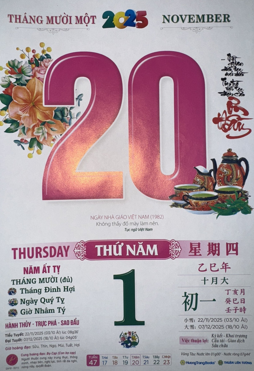 Thứ 5 ngày 20 tháng 11 năm 2025
