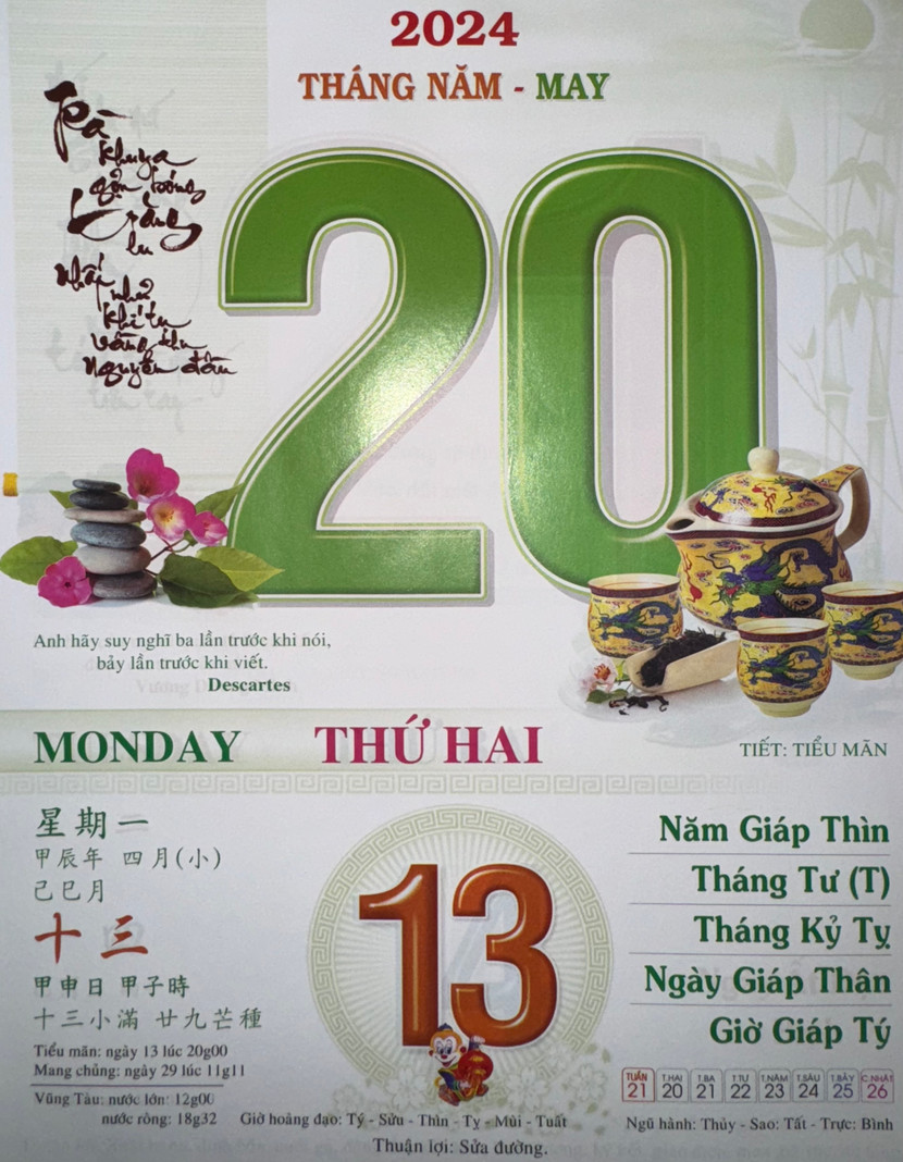 Thứ 2 ngày 20 tháng 5 năm 2024
