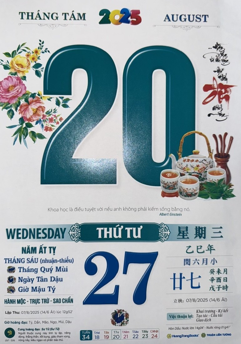 Thứ 4 ngày 20 tháng 8 năm 2025