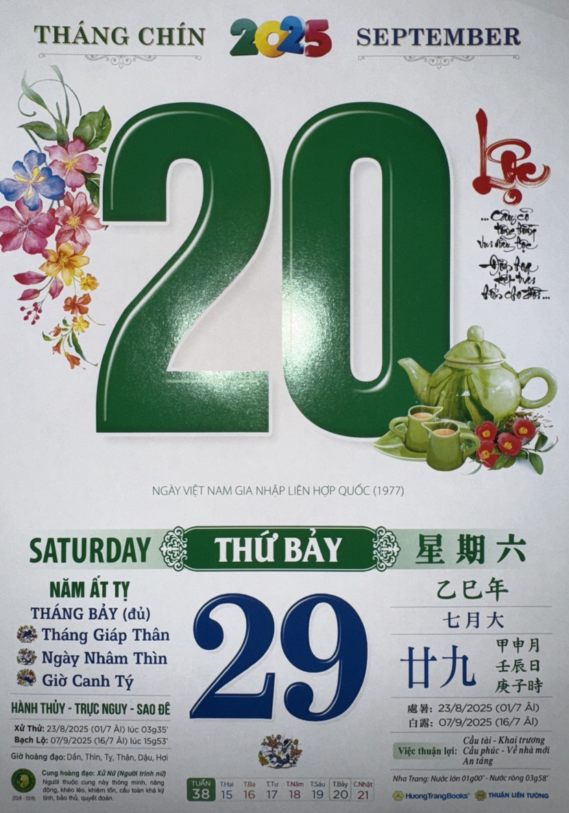 Thứ 7 ngày 20 tháng 9 năm 2025