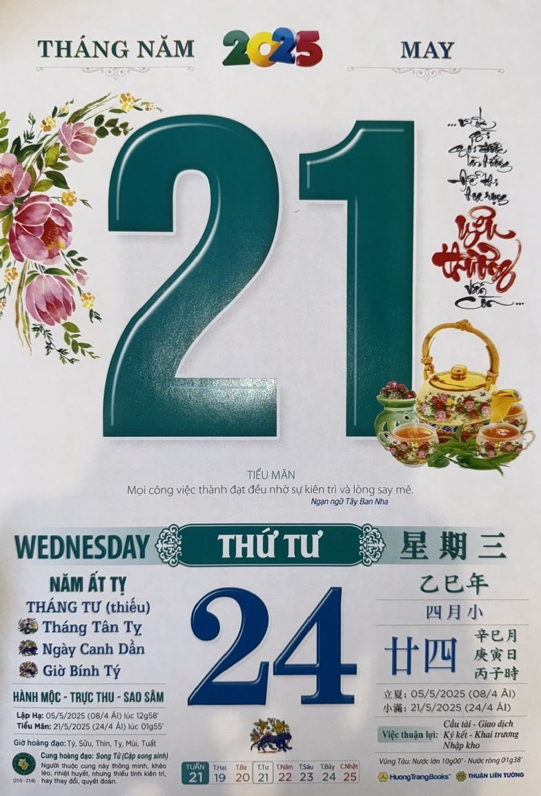 Thứ 4 ngày 21 tháng 5 năm 2025