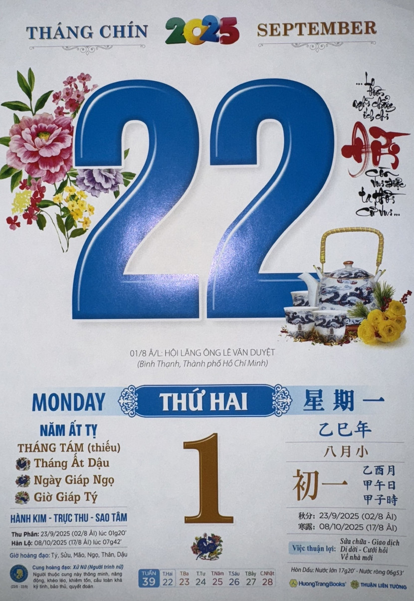 Thứ 2 ngày 22 tháng 9 năm 2025