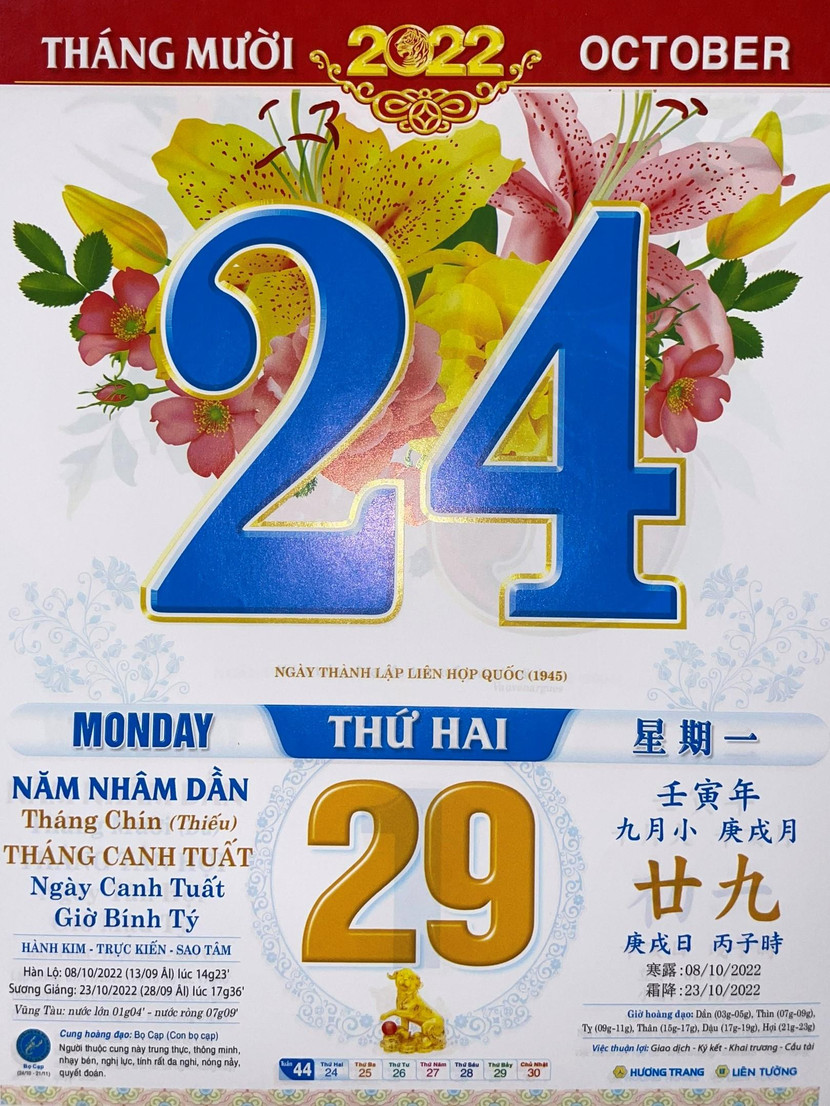 Thứ 2 ngày 24 tháng 10 năm 2022