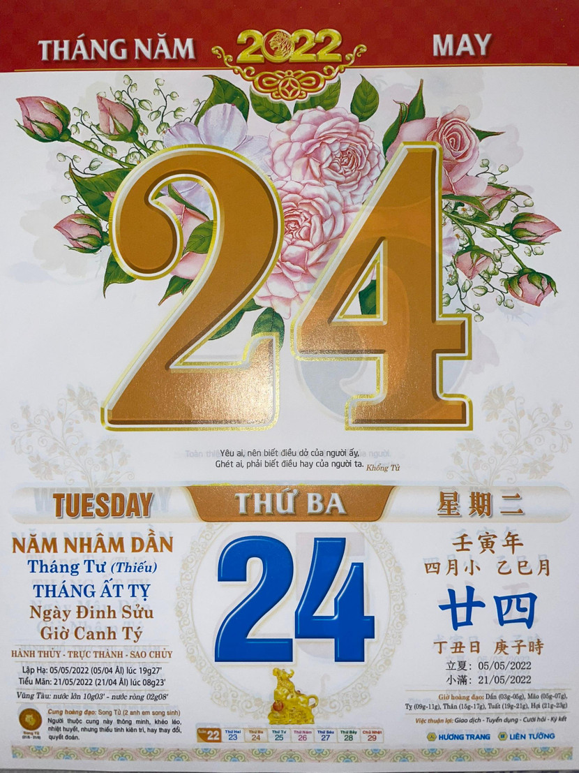 Thứ 3 ngày 24 tháng 5 năm 2022