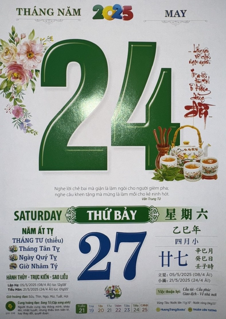 Thứ 7 ngày 24 tháng 5 năm 2025