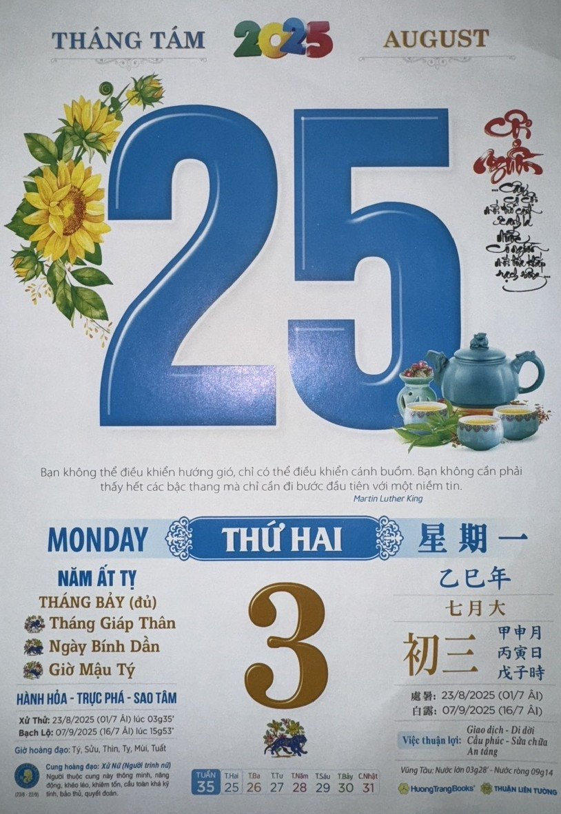 Thứ 2 ngày 25 tháng 8 năm 2025