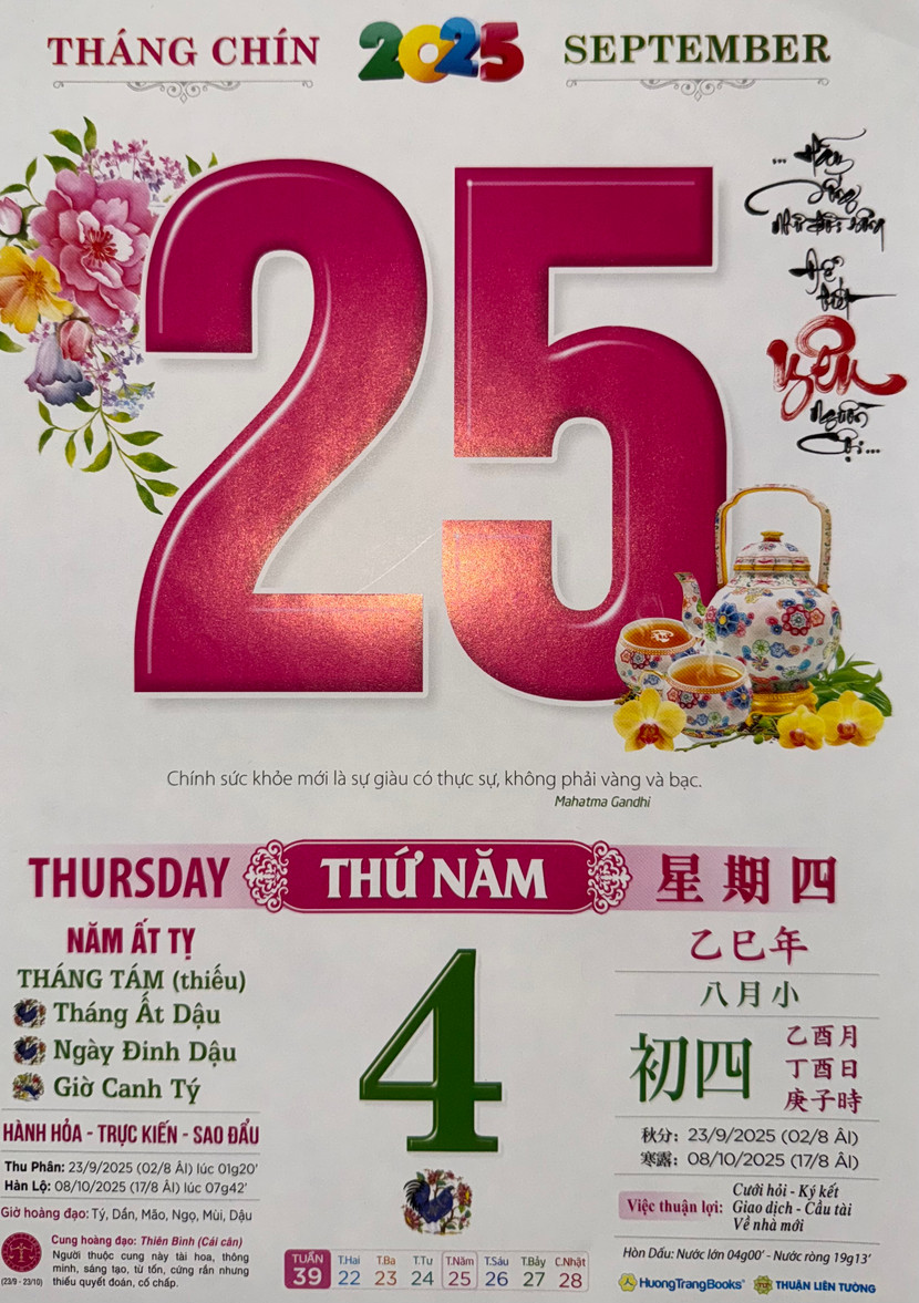 Thứ 5 ngày 25 tháng 9 năm 2025