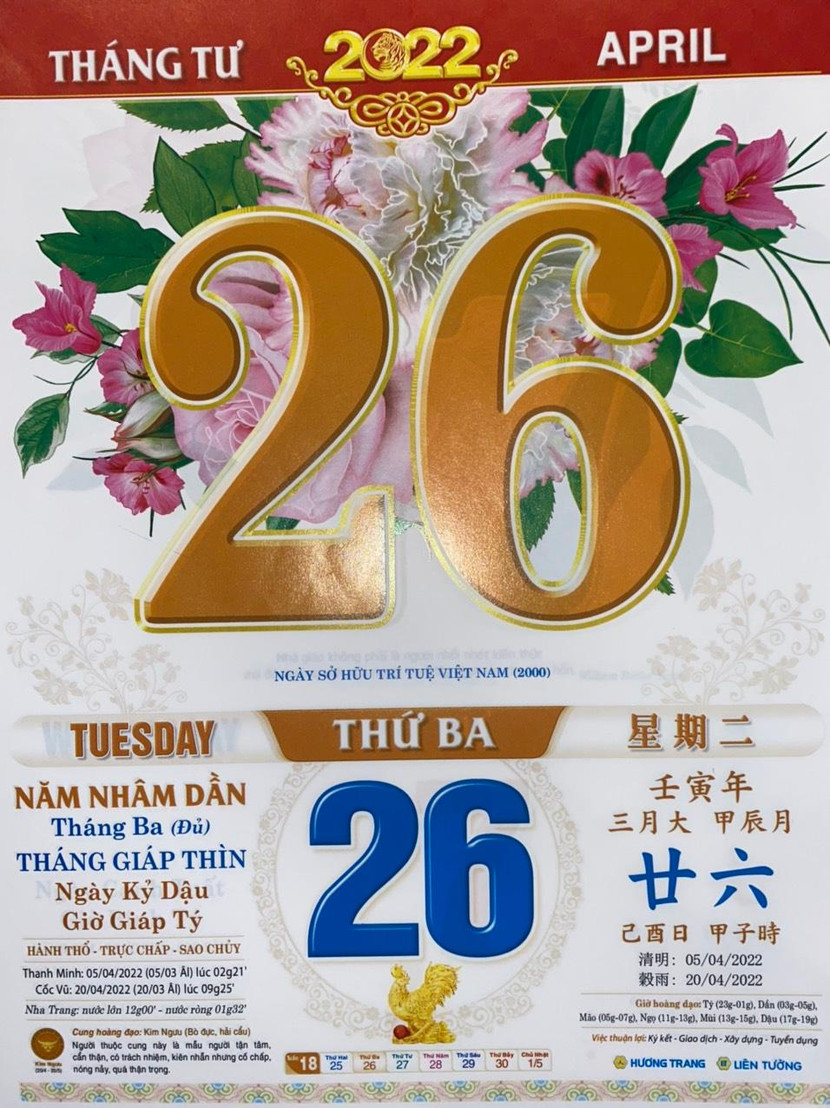 Thứ 3 ngày 26 tháng 4 năm 2022
